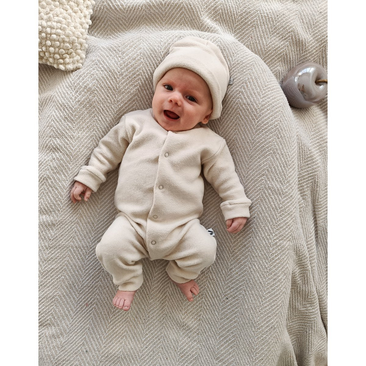 Met liefde handgemaakt in Nederland, waardoor elk pakje een perfecte pasvorm en hoogwaardige afwerking heeft. De natuurlijke kleurtonen zorgen voor een rustige, pure uitstraling — ideaal voor een serene newborn garderobe.