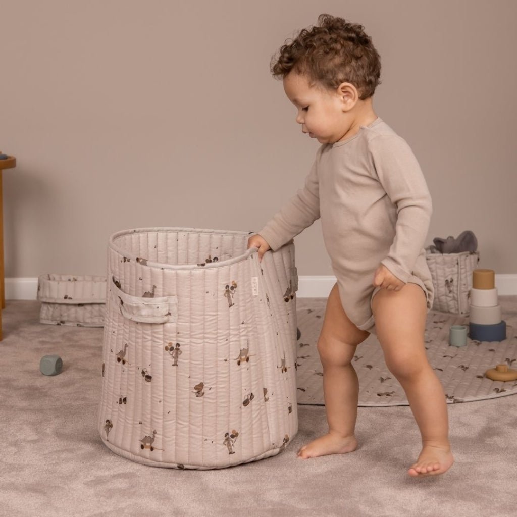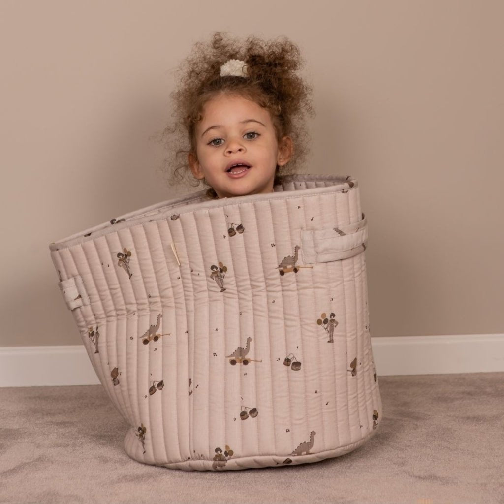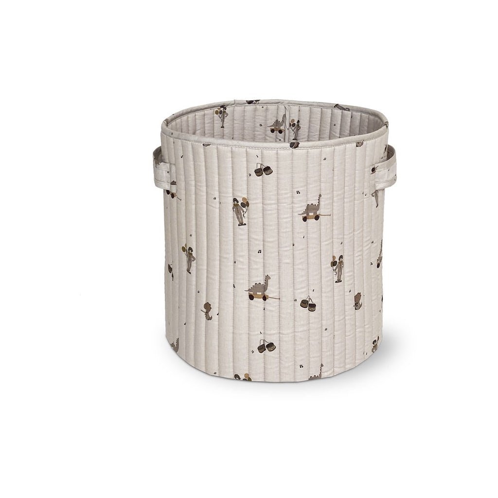 Maak opruimen leuk met deze speelse opbergtas in het Music Dino-design. Perfect voor het opbergen van speelgoed, knuffels of andere spulletjes in de kinderkamer. De tas is gemaakt van 100% biologisch katoen, is stevig gewatteerd en voegt een vrolijke touch toe aan elke ruimte.