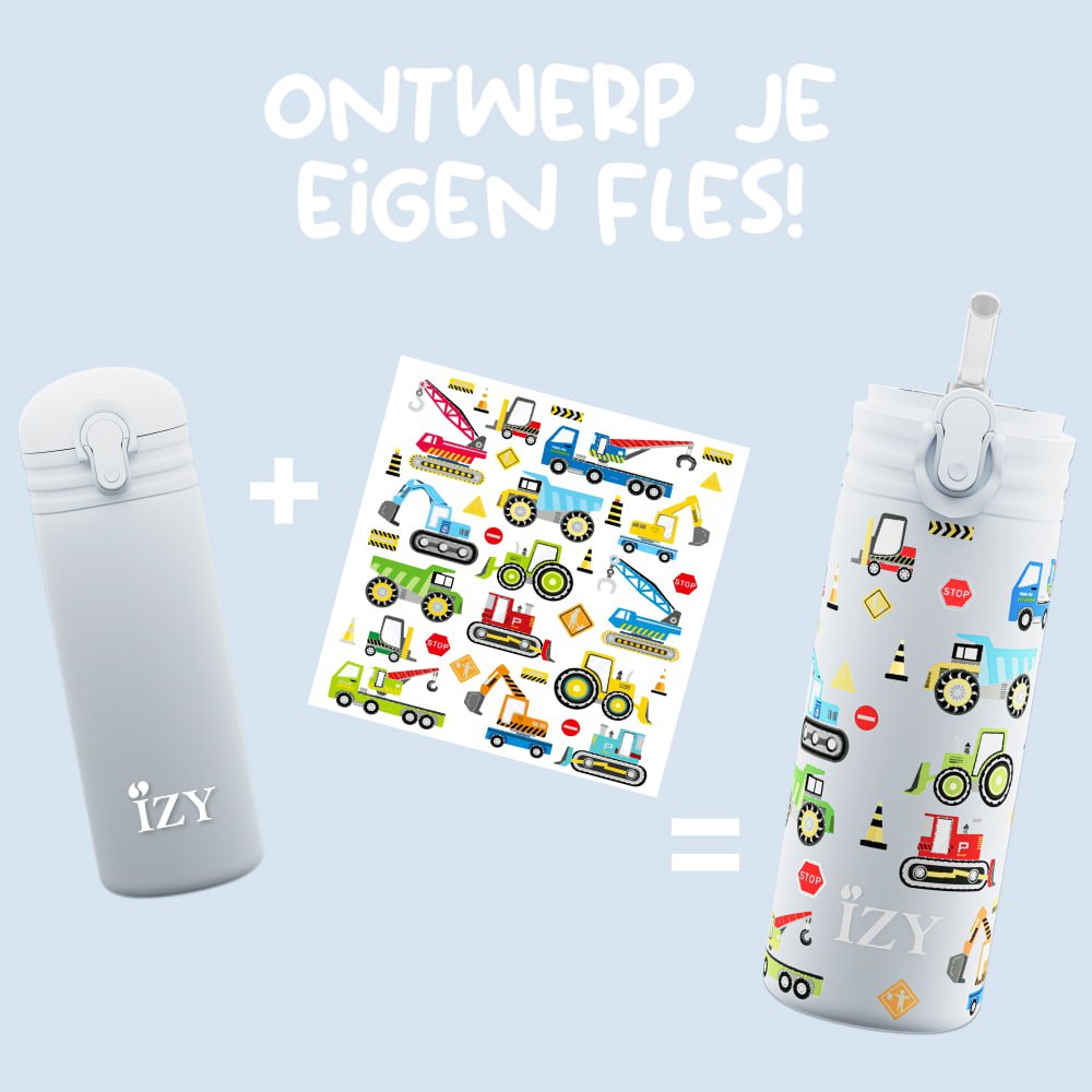 De IZY x Kids Blue Machines combineert duurzaamheid met creativiteit. De fles is herbruikbaar, stevig en stimuleert kinderen om hun eigen ontwerp te maken – ideaal voor jonge avonturiers en schoolgaande kinderen.