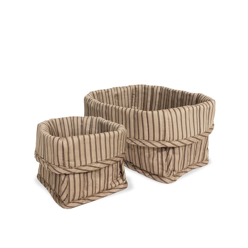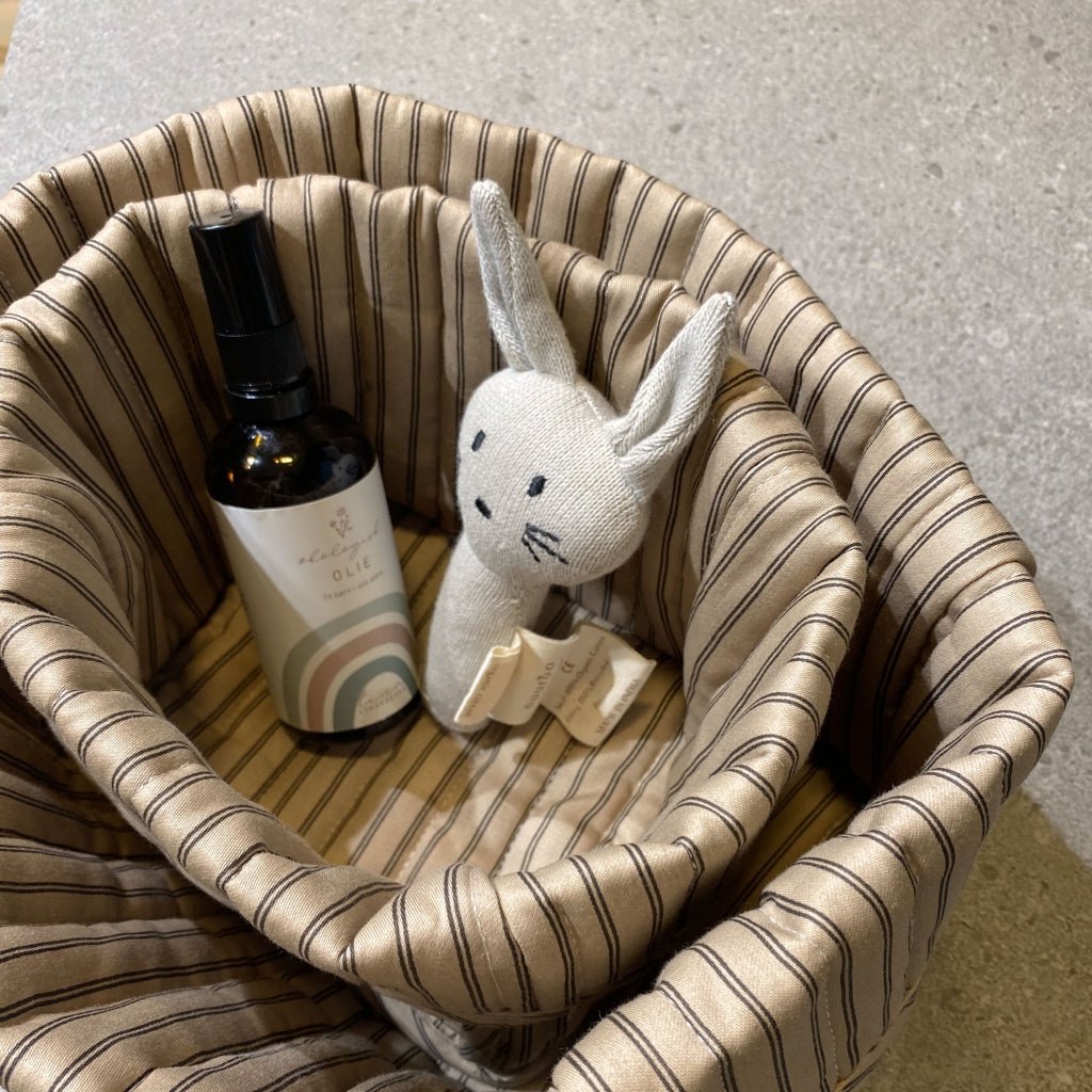 Praktisch én stijlvol: deze gewatteerde mandenset van 100% biologisch katoen is ideaal om babybenodigdheden netjes op te bergen. Perfect voor op de commode, in de badkamer of op een plankje in de kinderkamer. De zachte stof en het subtiele streeppatroon in crème geven een rustige, natuurlijke uitstraling.