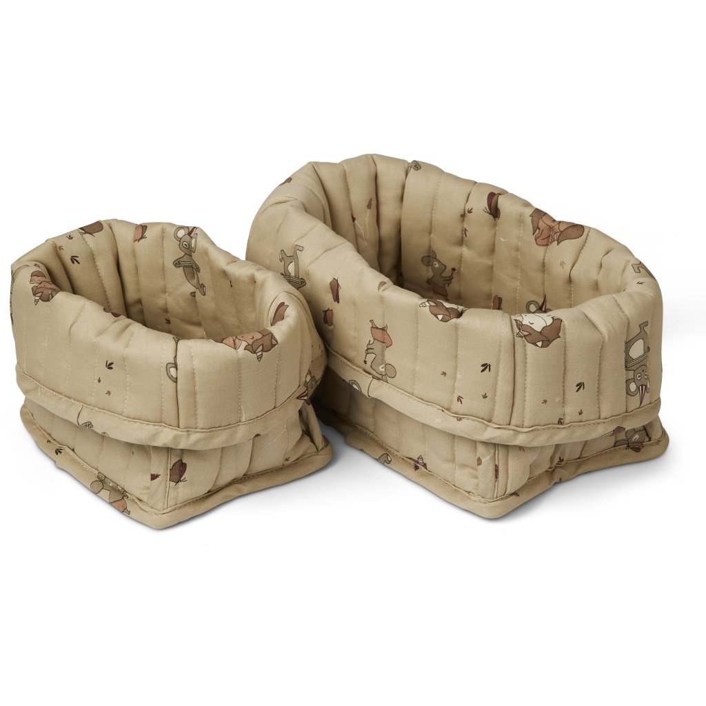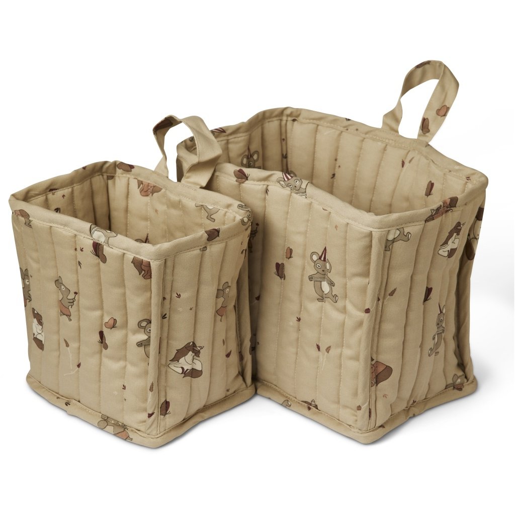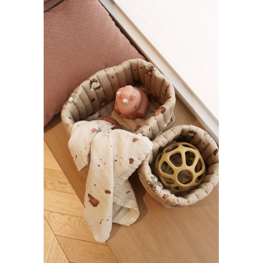 Deze schattige mandenset helpt je om de babykamer netjes en stijlvol te houden. Ideaal voor luiers, verzorgingsproducten of kleine accessoires. De manden zijn gewatteerd, gemaakt van 100% biologisch katoen en staan prachtig op de commode, in de badkamer of op een plankje.