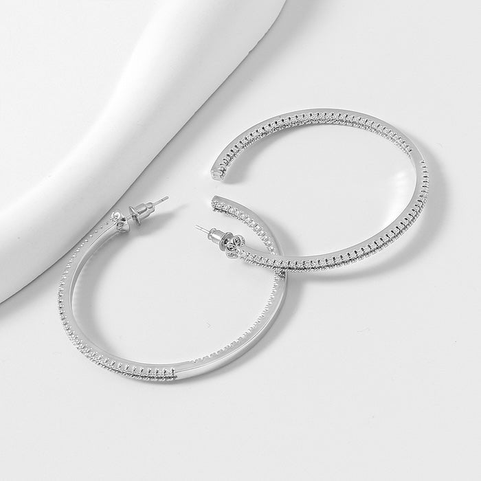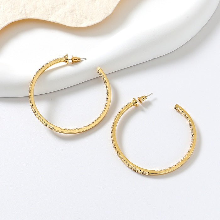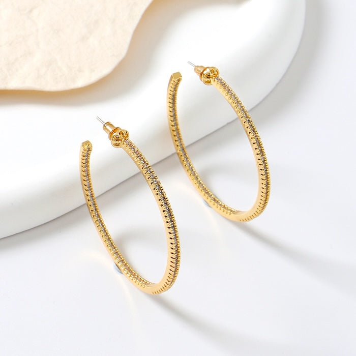 Deze oversized hoepels herdefiniëren glamour, met het volledige oppervlak ingelegd met AAAA-kwaliteit zirkonia’s. Dankzij het 360-graden ontwerp schitteren de oorbellen niet alleen aan de buitenkant, maar ook aan de binnenzijde van de hoepel. Met een diameter van 7 cm en een robuuste uitstraling trekken ze direct de aandacht. Het oversized design maakt ze tot een opvallend mode-item, ideaal voor wie een gedurfd statement wil maken. Verkrijgbaar in goud- en zilverkleur, vervaardigd van messing en afgewerkt met een glanzende vergulde of verzilverde laag.