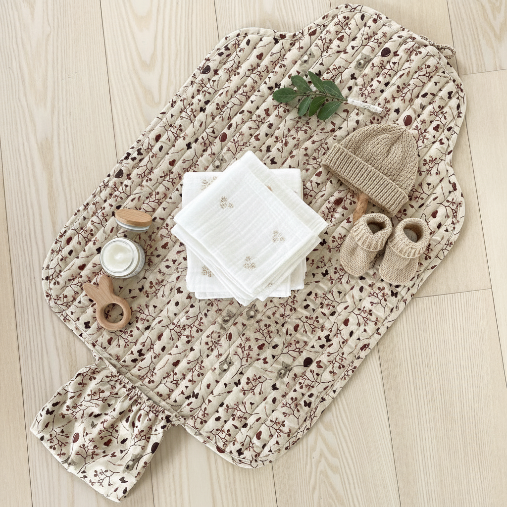 Het Nuuroo Rana aankleedkussen combineert een schattig design met praktisch gebruiksgemak. Gemaakt van 100% biologisch katoen en gecertificeerd volgens Oeko-tex, is dit aankleedkussen een duurzame keuze voor elke ouder. Dankzij het opvouwbare ontwerp past het kussen moeiteloos in elke mamatas, ideaal voor onderweg of op reis. De zachte kwaliteit en het formaat van 48 x 68 cm bieden comfort en gemak tijdens het verschonen, waar je ook bent. Met de kleur Koalabloem voegt het kussen een stijlvolle touch toe aan elke babyuitzet. Kies voor kwaliteit en duurzaamheid met RedUse.
