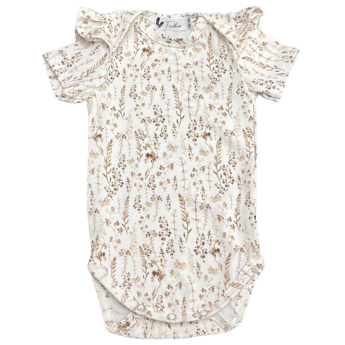 Op zoek naar een lief en luchtig rompertje met een natuurlijke uitstraling? Dit handgemaakte rompertje met korte mouwen en ruffle details is uitgevoerd in een subtiele Dried Flowers print – perfect voor zomerse dagen of als cadeautje voor een pasgeborene.